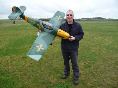 Dave A with his Junkers J7 plane which won him the 2013 Winter Build Trophy.